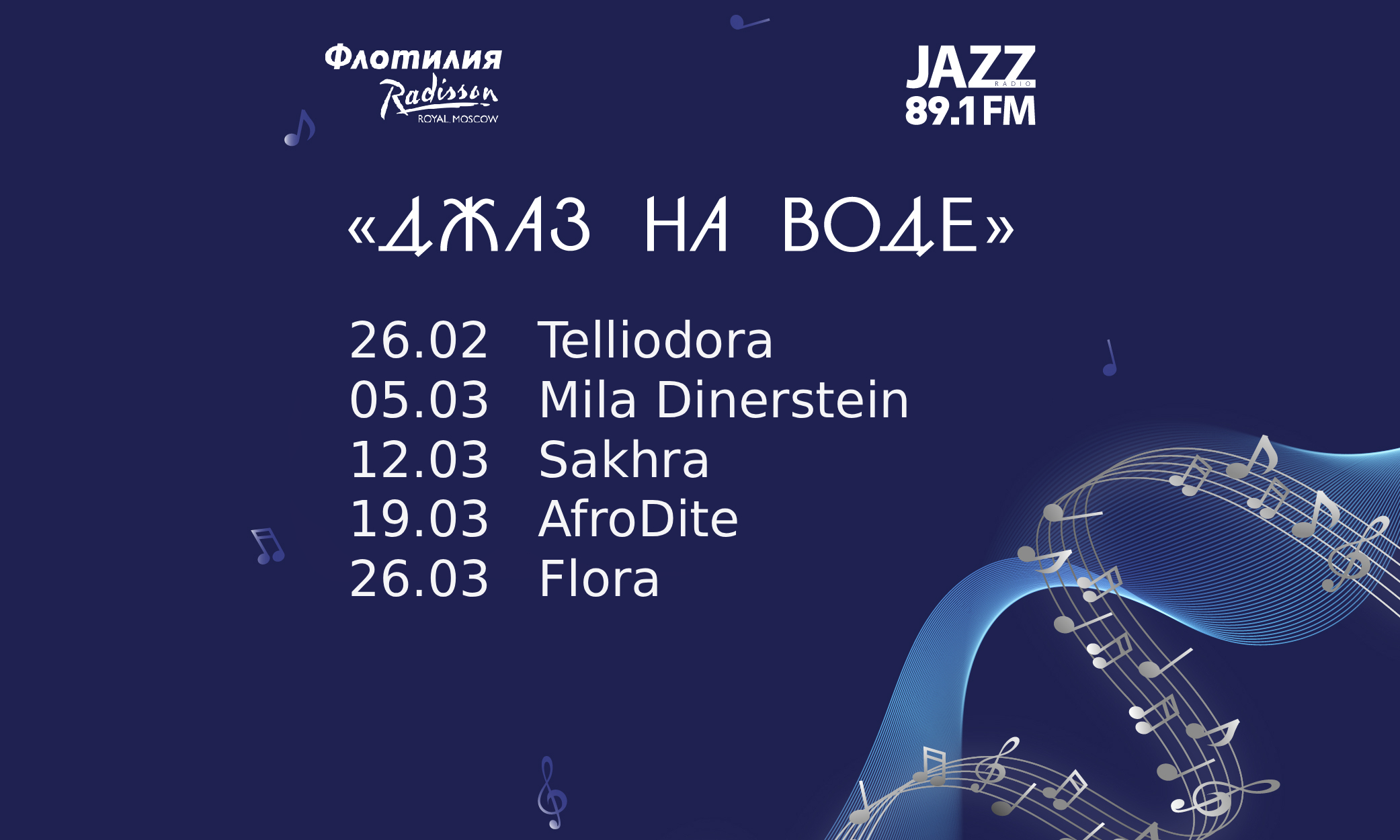 Флотилия «Рэдиссон Ройал» и Радио JAZZ 89.1 FM приглашают москвичей и гостей столицы в уникальное путешествие – «Джаз на воде». Каждый четверг мы ждем Вас на причале «Гостиница «Украина», чтобы вместе отправиться навстречу самым теплым и романтичным воспоминаниям.