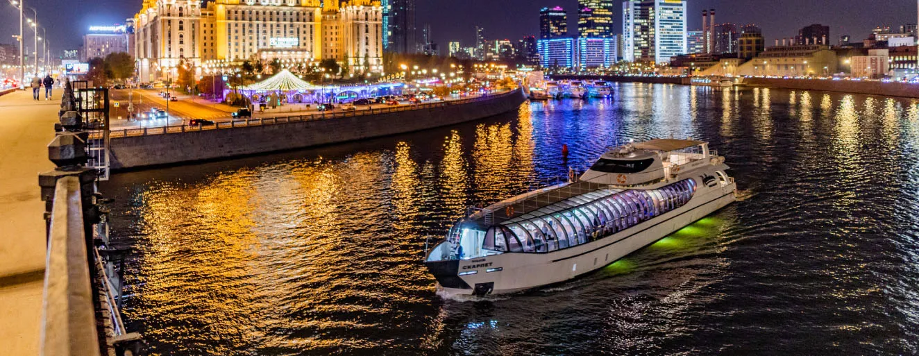 Авторская кухня, комфортабельные диванные группы, живая музыка на вечерних рейсах с четверга по субботу на яхте «Монтана».